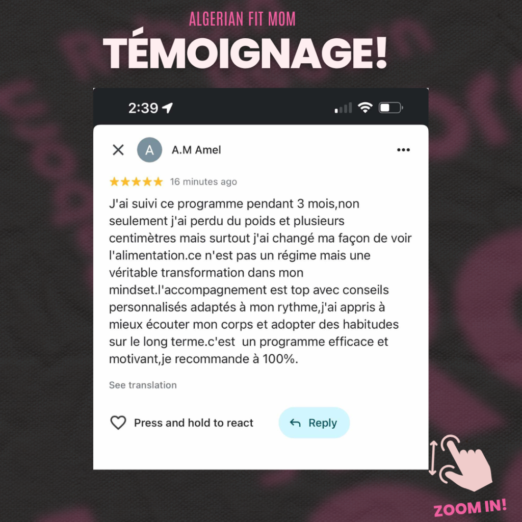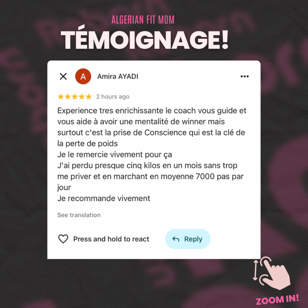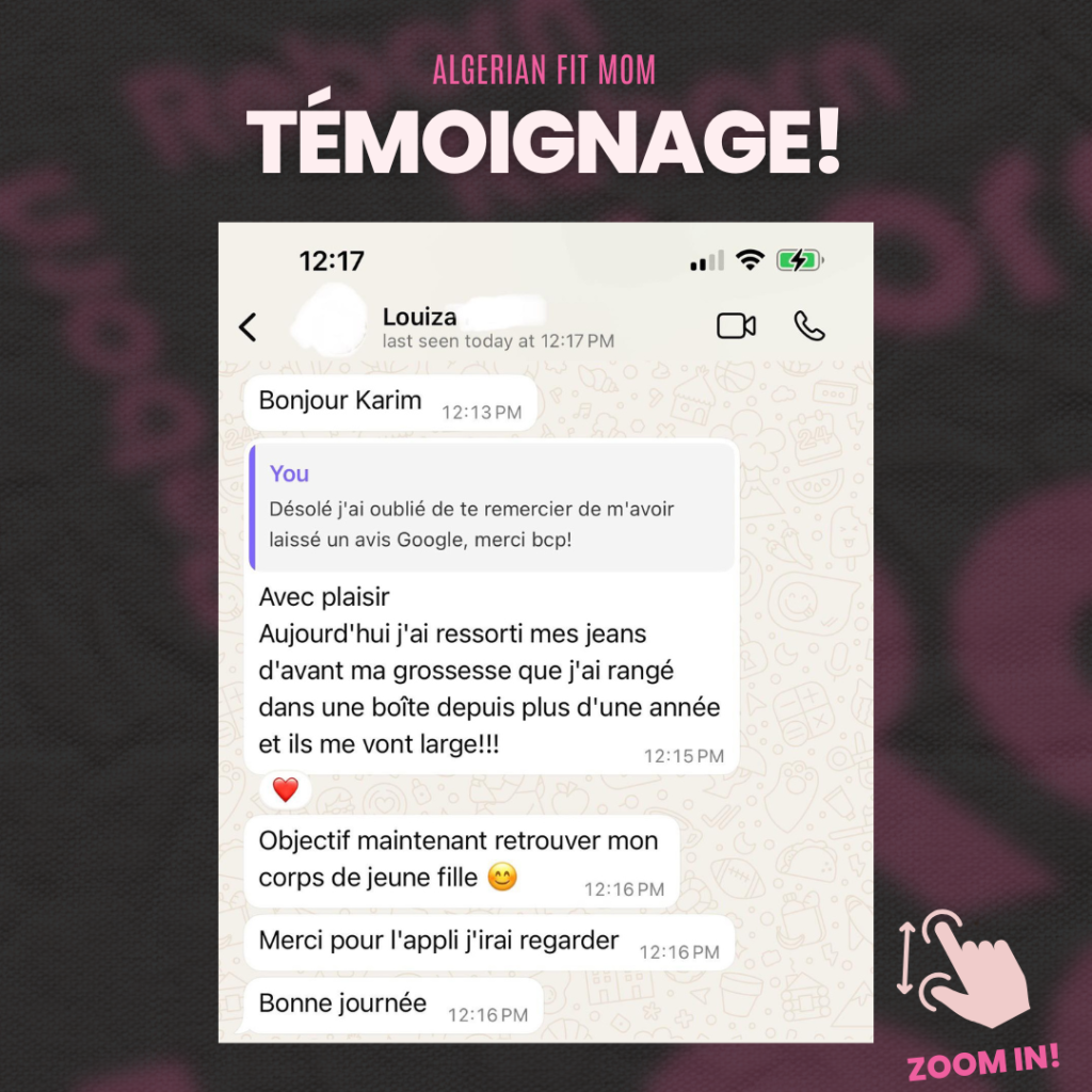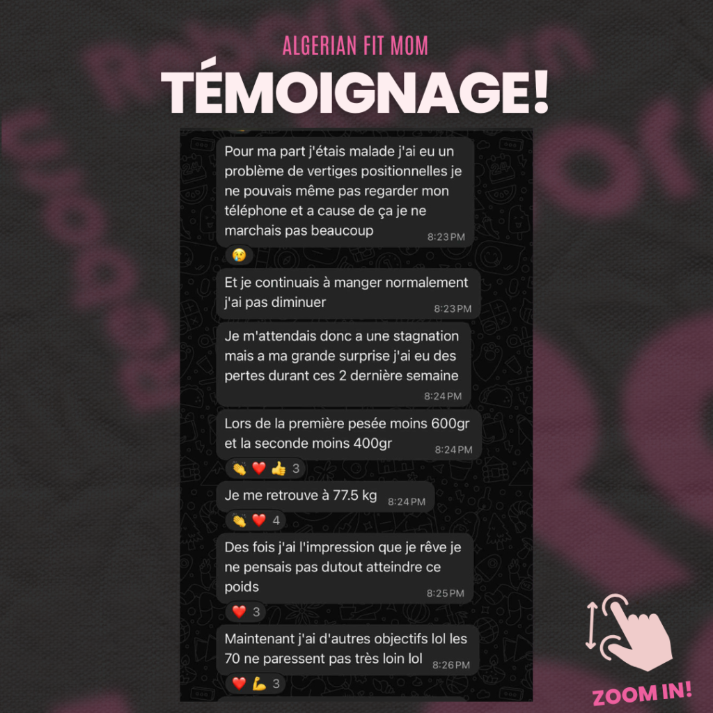« J’étais persuadée qu’il fallait se priver de nos plats traditionnels pour perdre du poids. Aujourd’hui, je mange du couscous avec mes enfants sans culpabilité… et je continue à maigrir. Merci Coach Karim, je revis ! » ~ Sarah